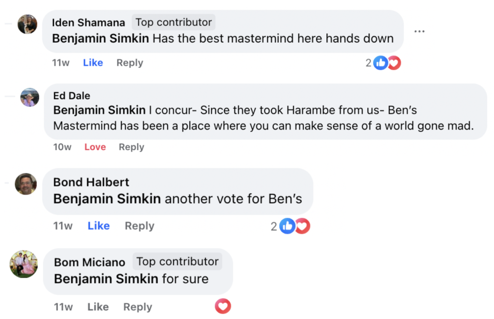 I highly recommend the mastermind to anyone who wants to grow their business. The people you get to meet in the mastermind are all amazing and have so much value to offer. Ben Simkin is a fantastic mentor who is willing to help with any questions you may have and always goes the extra mile to get them answered.